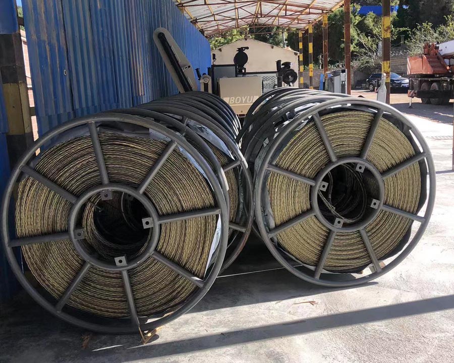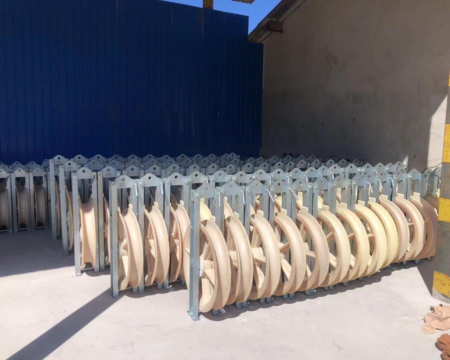 5、平行線拐角塔前后左右也不適合設(shè)定張力機(jī),由于導(dǎo)線根據(jù)放線滑輪鋼筋錨固很不便捷。